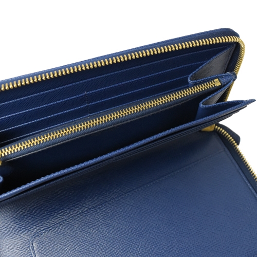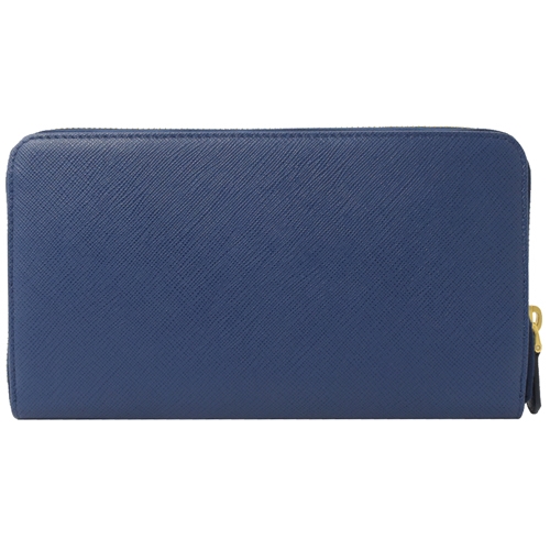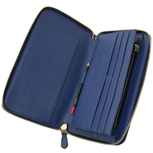 PRADA 1ML188 三角LOGO粒紋護照寬版拉鍊長夾.深藍專櫃商品 附專櫃購證影本 經典熱銷款推新色 簡單有型又實用的配件單品